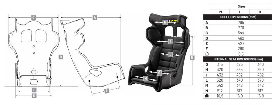 Sabelt sæde model GT-AM i glasfiber. FIA-8855-2021-godkendt.